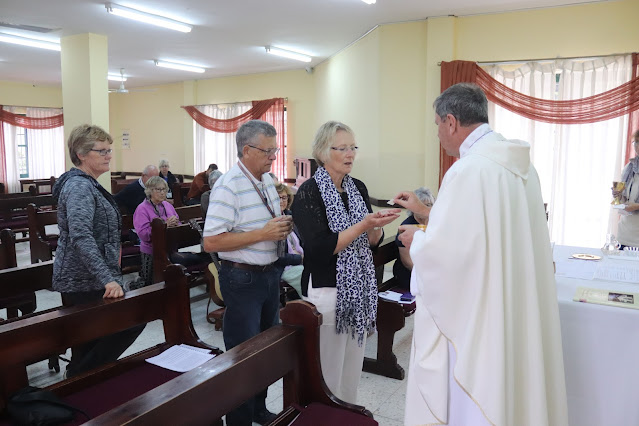 Mass was in the Parish of the Good Shepherd. We changed our Mass time enroute so we were in a simple little chapel above the junior section of the primary school. Outside we heard the constant tooting of the traffic. From below there was the sound of little children. And as we prayed the Eucharistic Prayer the call to prayer resounded from the mosque across the road. At our sharing in the evening someone made lamented that it is impossible for a Christian from Jericho to visit Jerusalem and the holy sites of Jerusalem.
